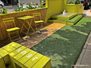 - Les aires aménagées dans les villes pour profiter du soleil : des tables, des hamacs, des bancs…
