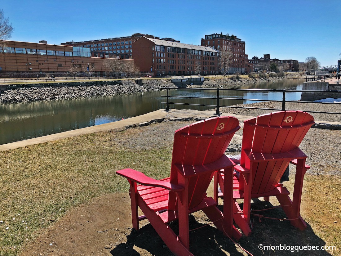 Il est très agréable de faire une petite pause au bord de l'eau, dans les chaises rouges, tellement typiques du pays. Et si les chaises ou les bancs ne sont plus disponibles, pas de soucis. On s'installe sur les pelouses, comme la majorité des Montréalais le font dans tous les espaces verts disponibles. Au final, nous avons profité du soleil, admiré les buildings du centre ville et regardé les enfants se dépenser et s'amuser sur les berges. Quoi de mieux pour se détendre quelques instants et profiter du temps libre en famille ?