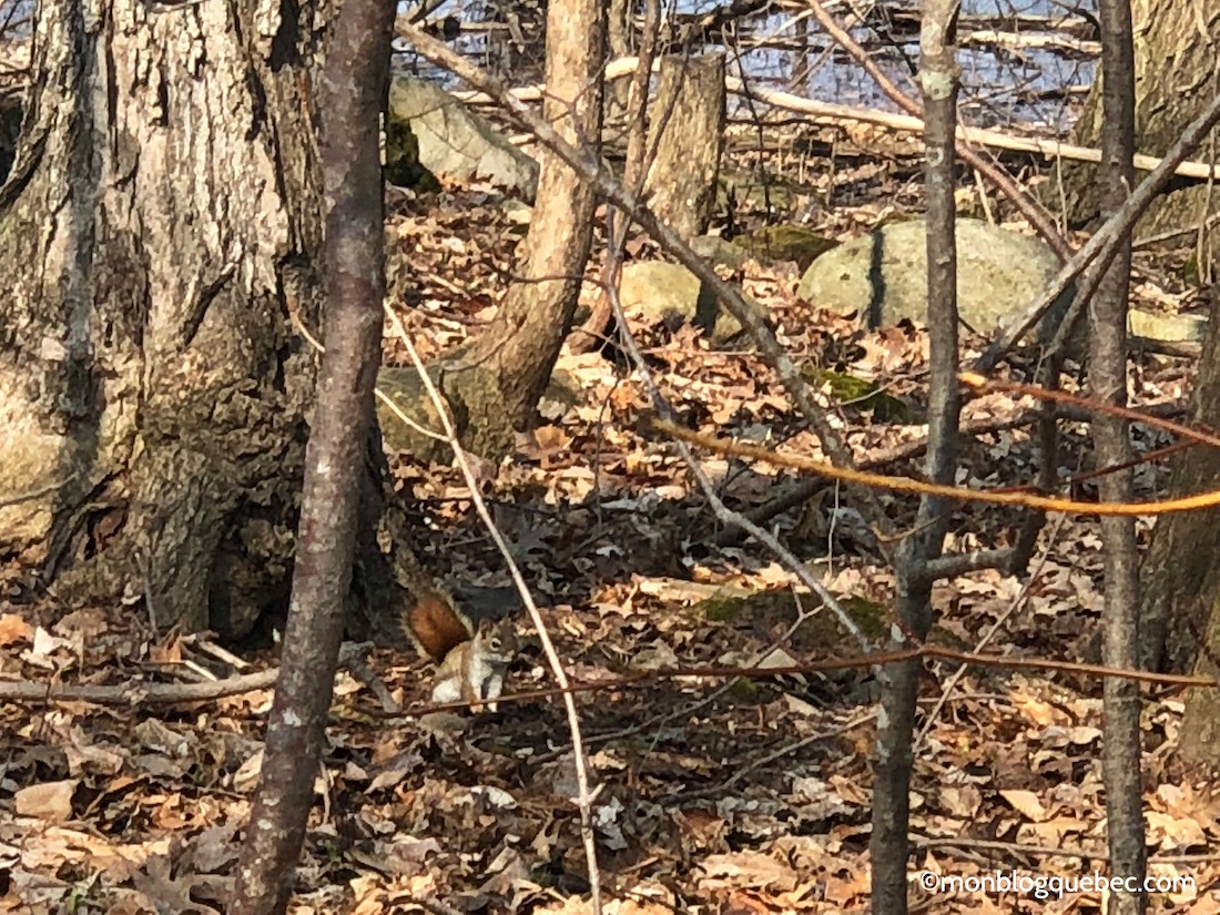 Qu'en est-il de la faune ? Et bien, lors de notre escapade en avril, nous avons rencontré biches, petits serpents (des couleuvres minces) et nombreux petits écureuils. Ils sont d'ailleurs assez différents de ceux rencontrés en ville. Ils sont plus petits, gris et roux et surtout ultra rapides dans leurs déplacements. Ce qui nous a permis de nous amuser à les repérer et essayer de les suivre des yeux. Pas facile !