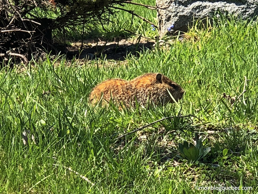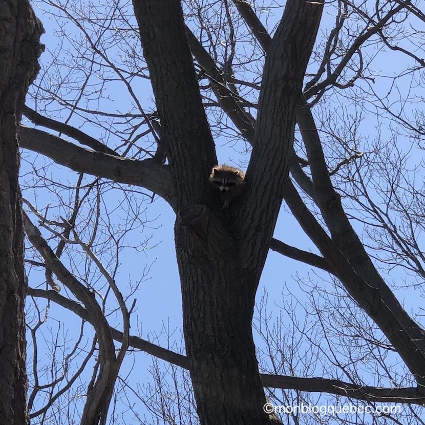 Au printemps, il est fréquent de rencontrer des animaux. Les traditionnels petits écureuils gris sont très nombreux. Ils s'approchent facilement de vous pour réclamer à manger. Mais, il est bien plus amusant de rencontrer des marmottes ou des ratons laveurs, non ? Nous avons même vu un raton laveur se réfugier en haut d'un arbre pour fuir un chien qui lui aboyait dessus. Bien entendu, il est redescendu une fois la tempête passée.