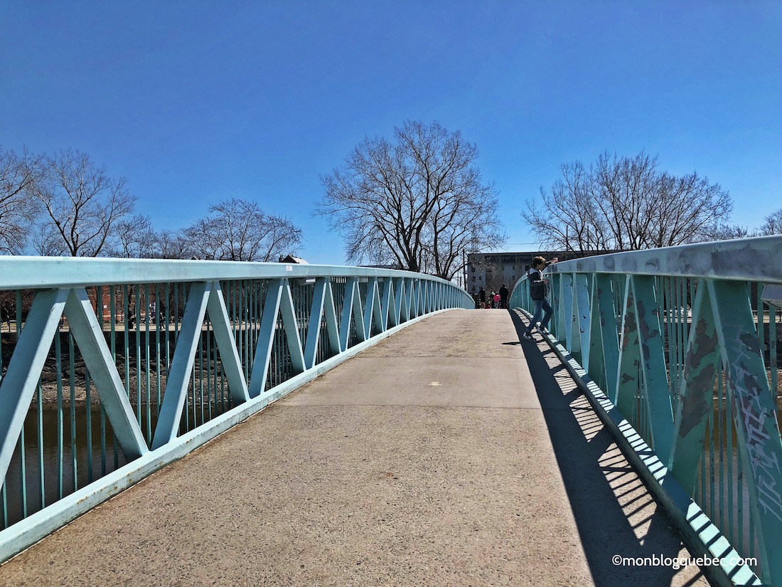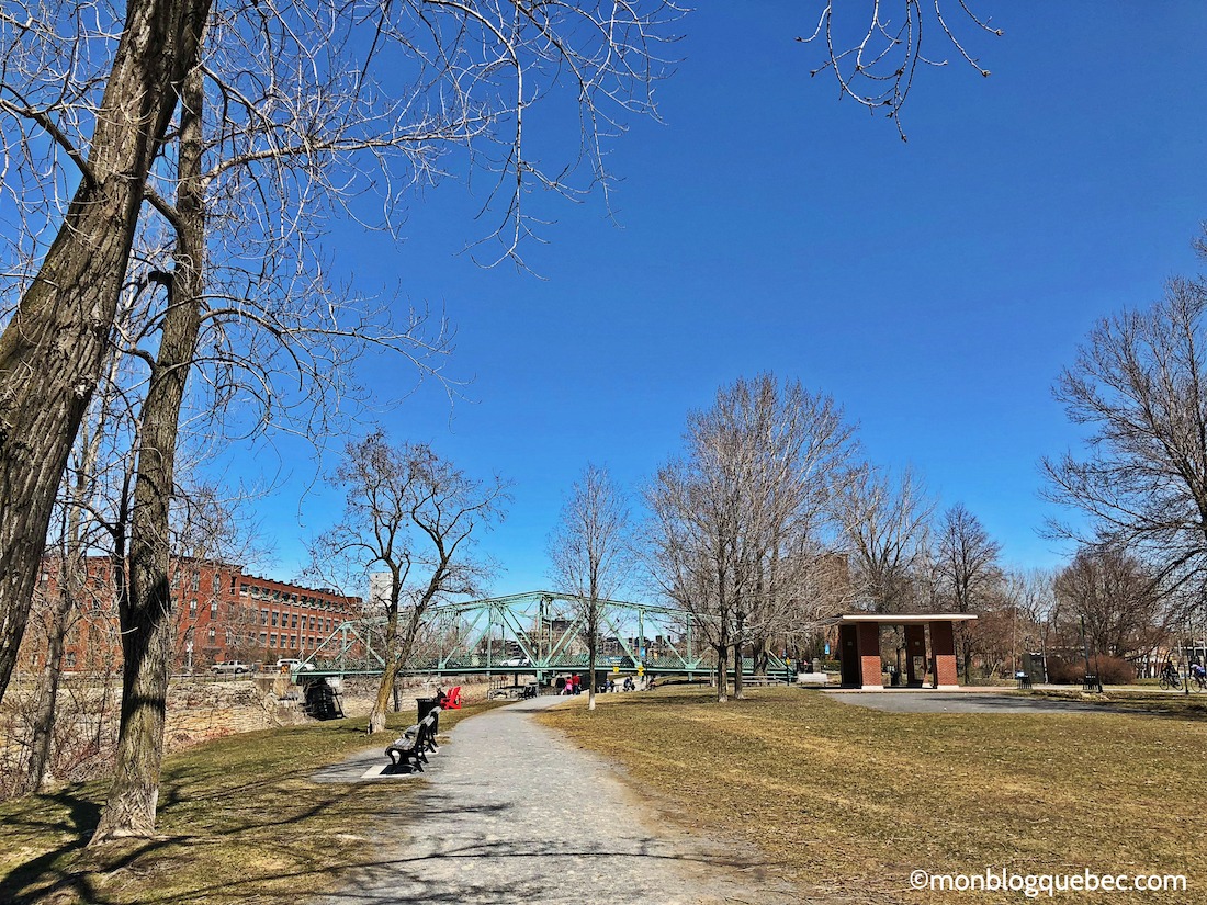 La seconde des randonnées à Montréal que nous apprécions tout particulièrement permet de marcher au bord de l'eau. Le canal de Lachine traverse la ville du Vieux-Port jusqu'au sud de l'arrondissement Lachine, où il se jette dans le lac Saint Louis. Long de 14 km, il permet aux navires d'éviter les rapides de Lachine. Mais 5 écluses sont nécessaires pour franchir les 15 mètres de dénivellation. Lieu historique de la ville, c'est aujourd'hui le lieu privilégié des Montréalais pour se balader sous les rayons du soleil. Nous avons déjà testé la piste cyclable, qui permet de parcourir le canal en entier. Mais, pour profiter des premières douceurs du printemps, nous avons décidé, cette fois, de nous balader à pieds.