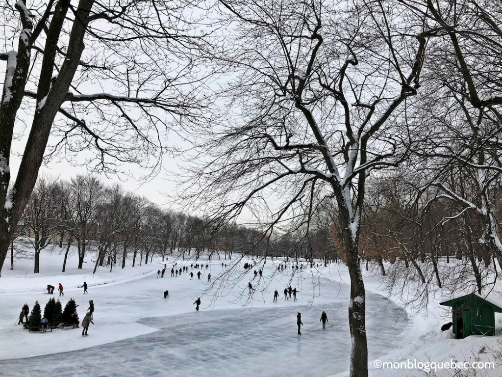 Pour continuer, nous avons essayé la patinoire naturelle du Parc Lafontaine. Il est vrai que patiner sur un lac ou un étang est toujours intrigant et particulièrement ludique. Celle de ce parc est immense, calme et reposante.