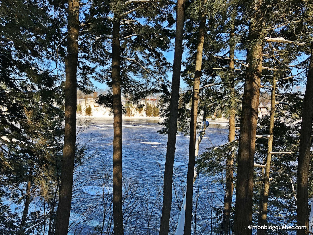 Pour finir, nous sommes partis aux alentours de Montréal. Et nous avons découvert un anneau de glace, à Drummondville, à une heure et quart de la ville. Au parc Woodyatt, au bord de la rivière Saint-François, cet anneau de glace est merveilleusement entretenu par les services de la ville. Les patineurs peuvent se changer au chaud, dans le chalet mis à leur disposition. Pas de location de patins, il faut venir avec son matériel. Mais l'accès est libre et gratuit. Et le décor est tellement merveilleux.