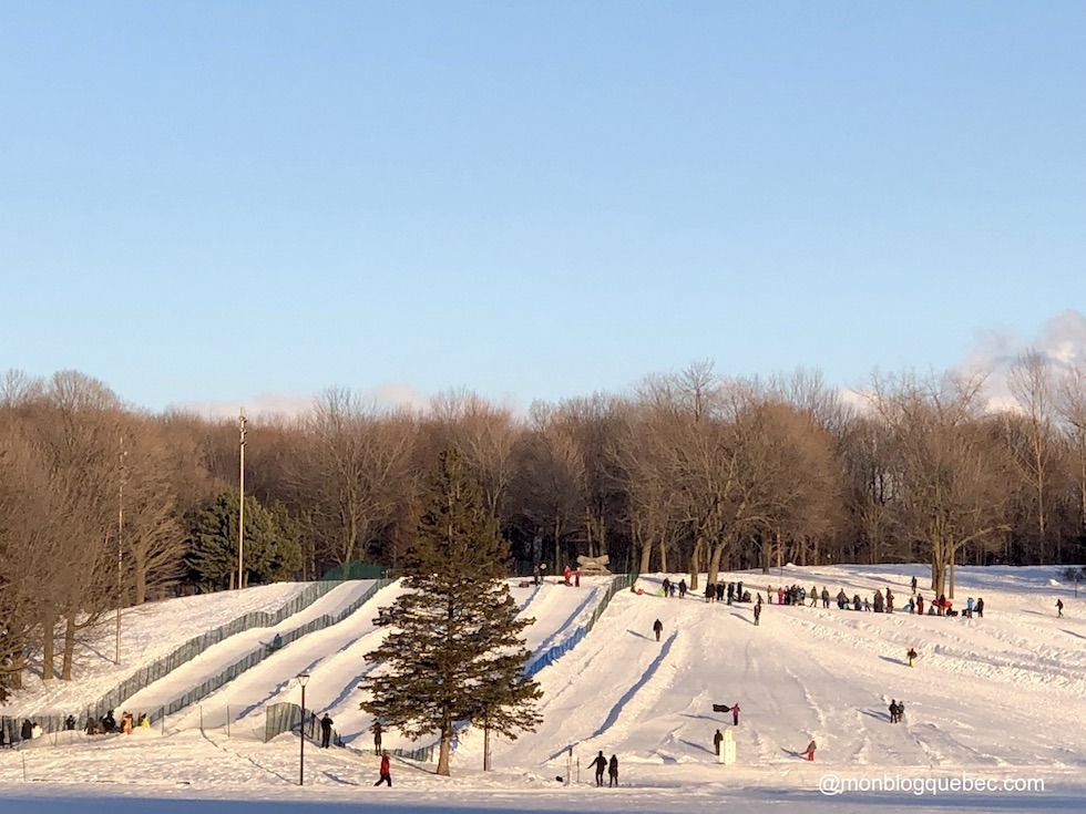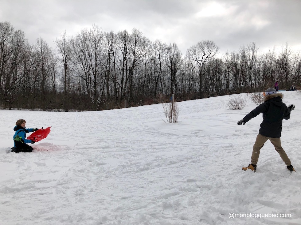 Nous avons aussi testé les glissades en famille. Le parc Mont-Royal offre des spots incroyables. Tu peux glisser avec ta luge sur la piste gratuite ou tester les glissages payantes sur bouées pour un petit budget.