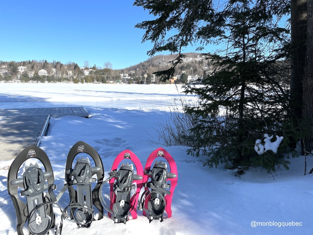 Cet hiver, nous avons enfin testé les randonnées en raquettes à neige. Un joli cadeau de Noël de nos enfants qui nous permet de nous déplacer sur les sentiers de neige fraiche. Nous adorons faire le tour du lac Carré gelé et admirer les chalets au bord de l’eau. Mais c’est très sportif !