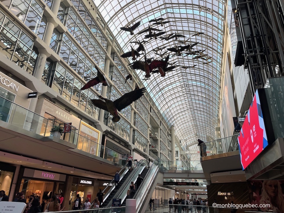 Non loin de là, le Eaton center, un centre d’achat à l’américaine avec pleins de marques ! Il offre une très belle vue sur l’intérieur avec ses multiples étages et son toit vitré qui laisse passer la lumière du jour.