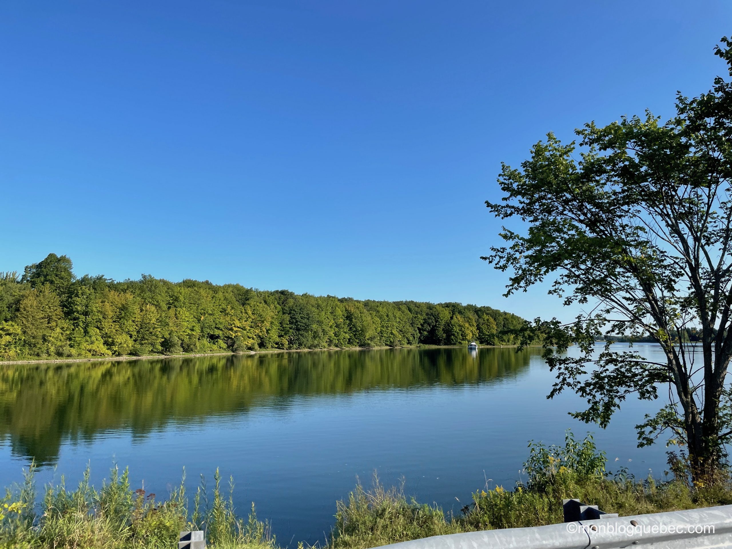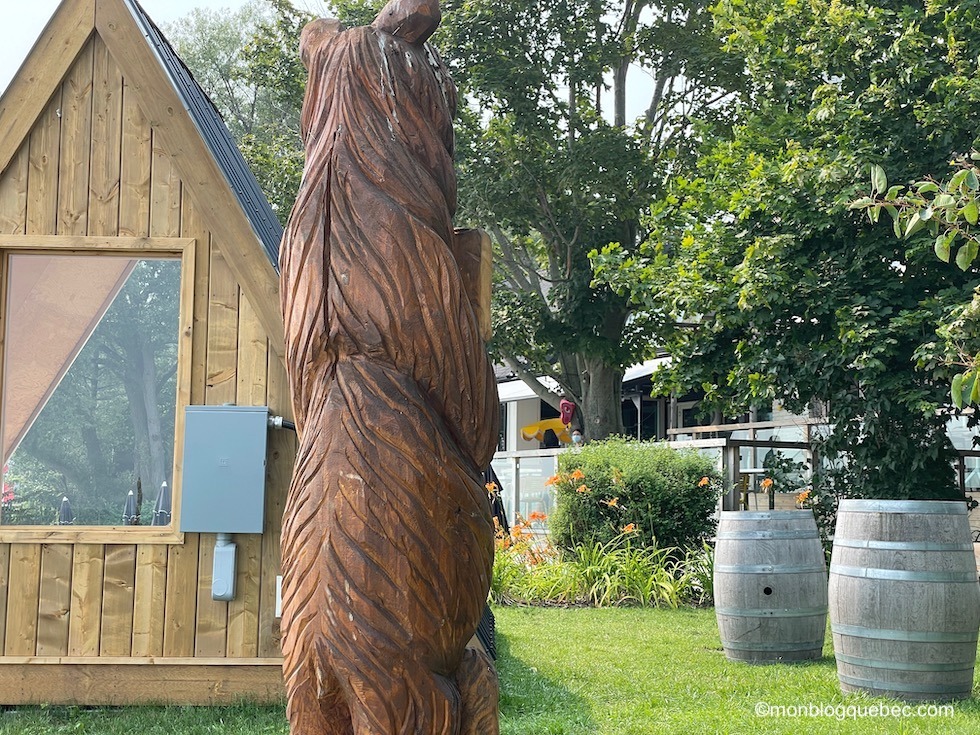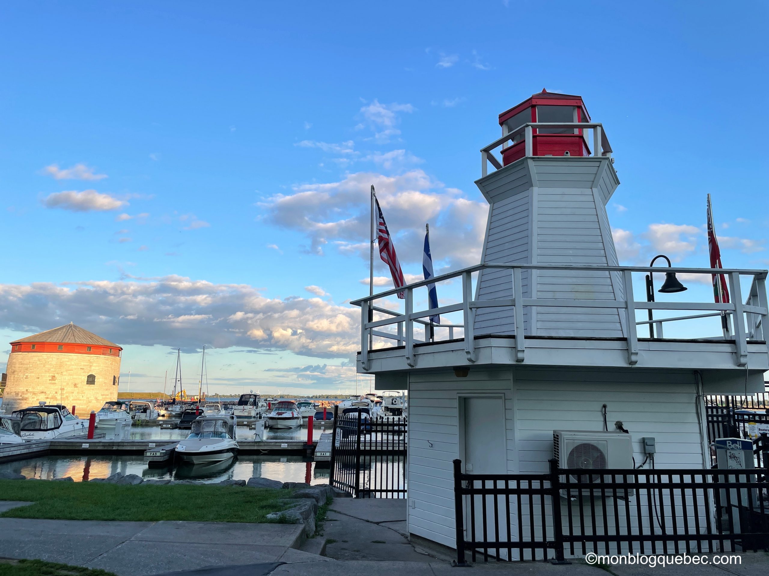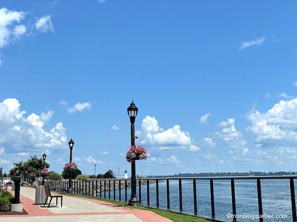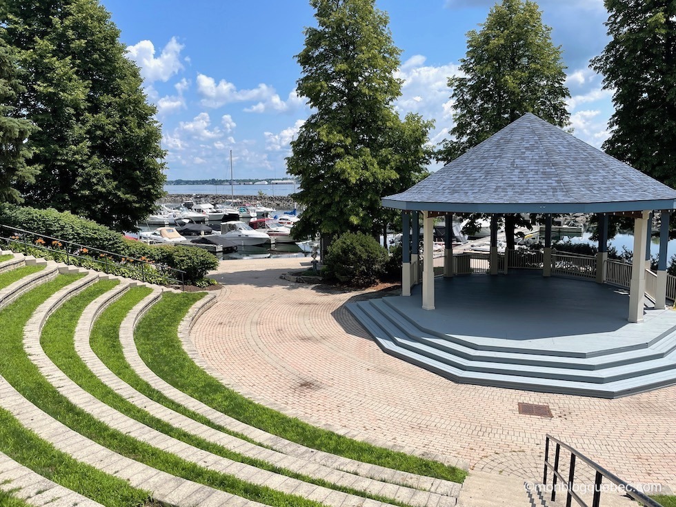 Nous avons fait un autre arrêt très agréable. Le village de Prescott offre une marina charmante Sandra S. Lawn Harbor : on pourrait se croire dans le sud de la France. Au final, les 2 jolis phares, le petit amphithéâtre avec sa scène couverte et le sentier au bord de l’eau donne à cet endroit des airs de station balnéaire. Et tu pourras voir combien les Etats-Unis sont proches, juste en face, de l’autre côté du Saint-Laurent. En pique-niquant sur le bord de l’eau, nous avons eu la surprise de voir un vison. Oui, tu as bien entendu un petit vison. Nous en avons revu une autre dans la parc du Mont-Tremblant et un garde nous a confirmé ce que c’était. Trop mignon.
