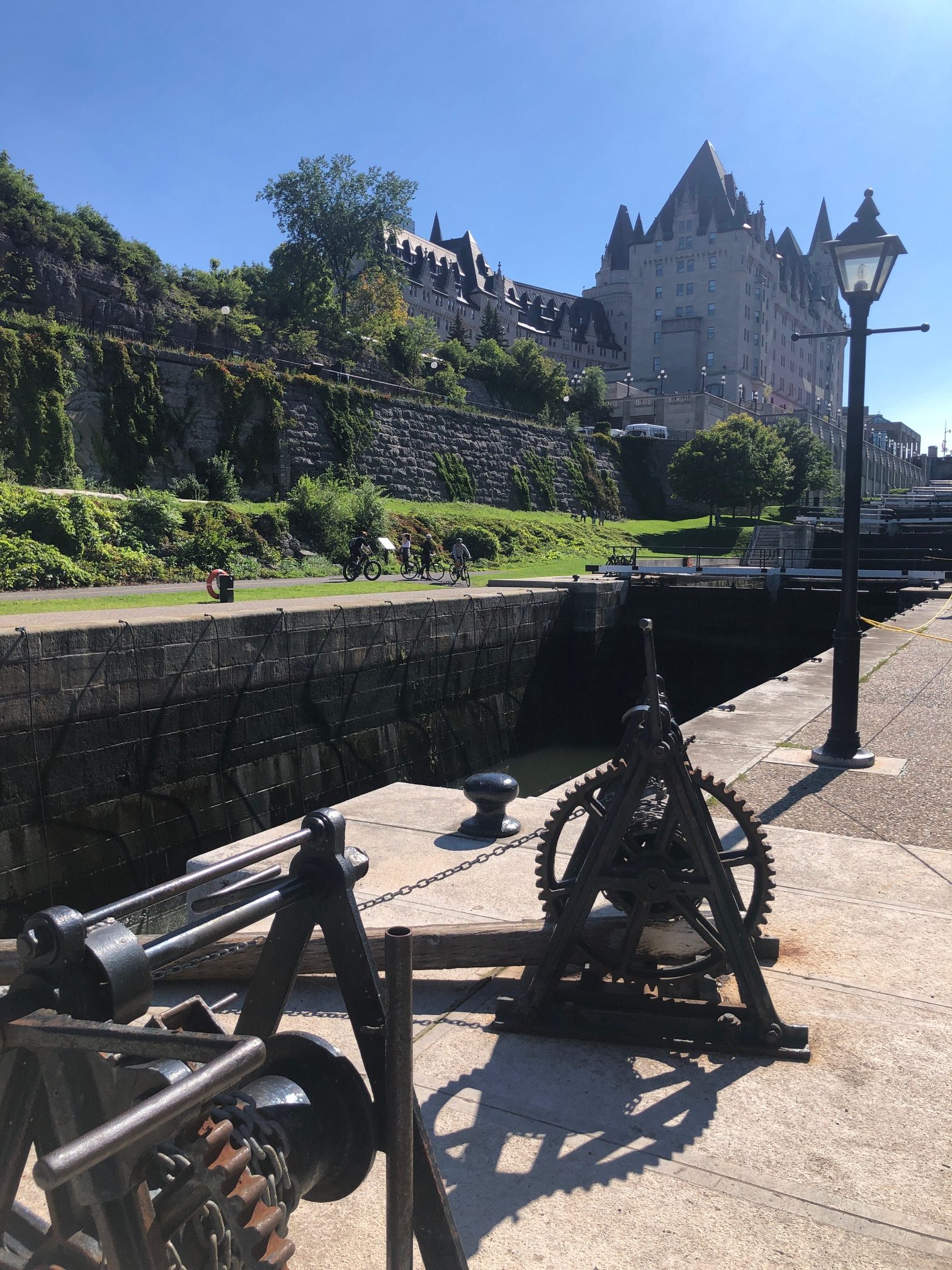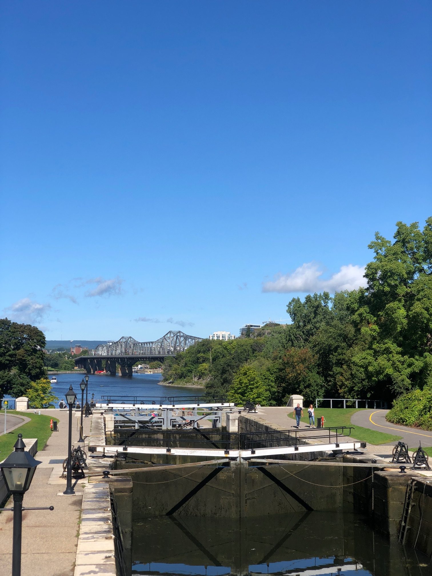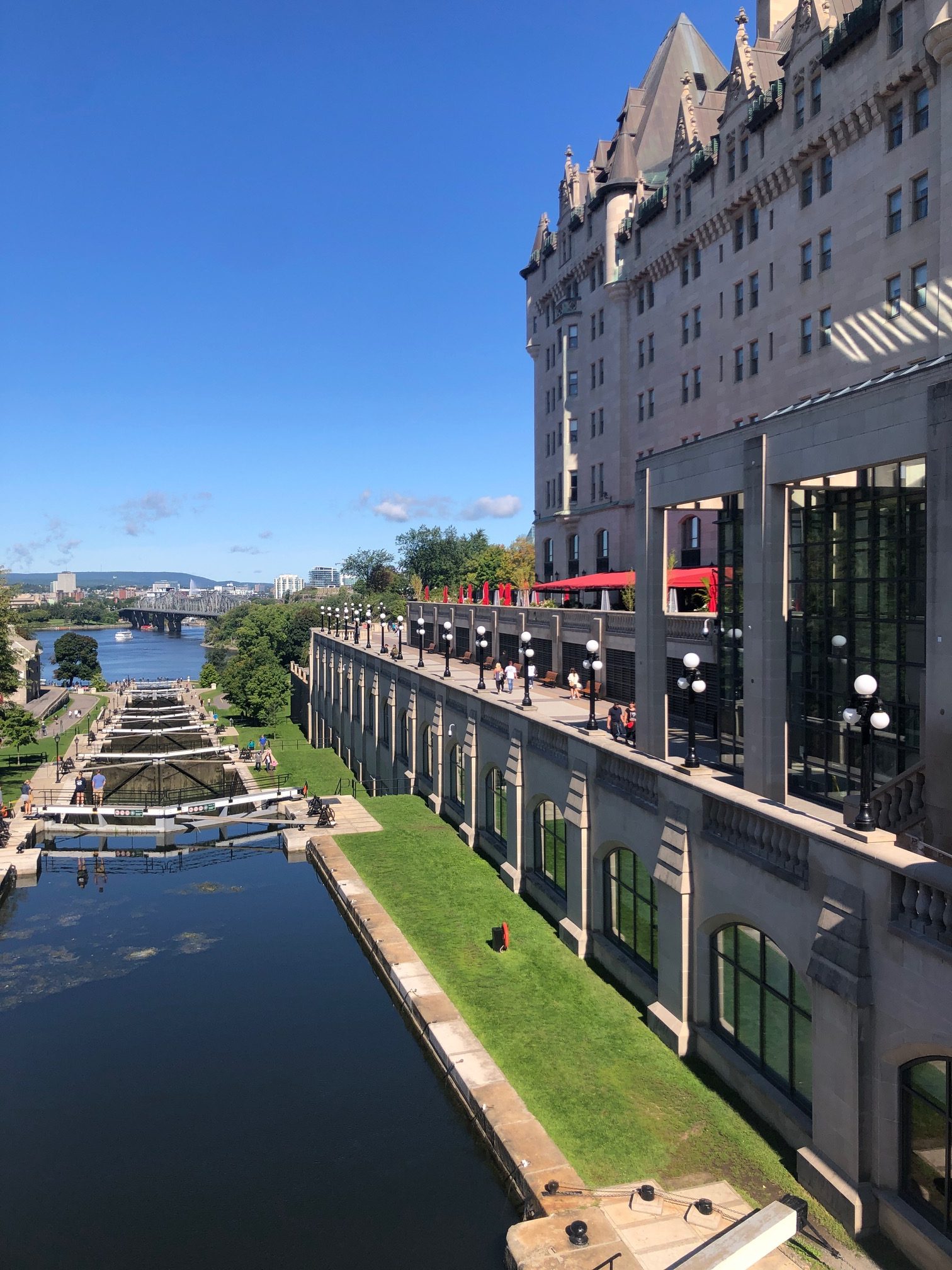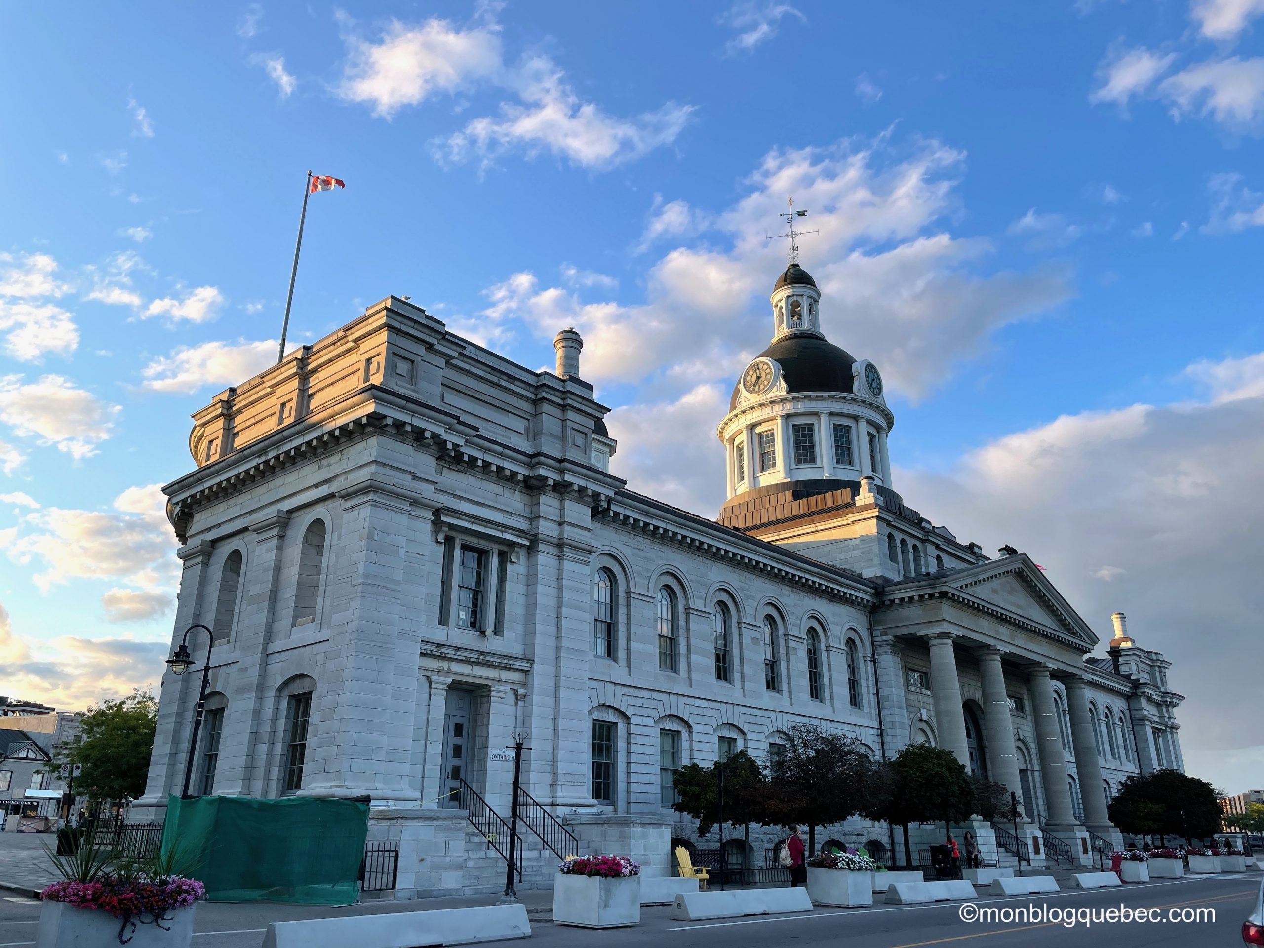 Nous avions visité Kingston en famille lors de notre séjour en 2016. Nous en avions un excellent souvenir. Donc, une halte s’imposait pour redécouvrir cette ville. Et nous n’avons pas été déçus. Kingston est surnommée la « ville du calcaire » en raison de ses grands bâtiments du XIXe siècle, notamment son hôtel de ville en bord du lac. C’est aussi la fin (ou le début) du canal Rideau qui rejoint Ottawa. Incroyable, non ?