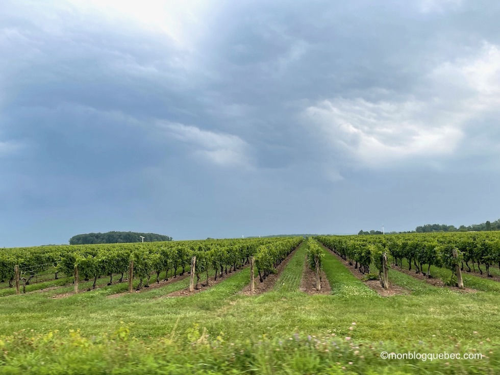 Nous choisissons le vignoble Trius pour notre dégustation. L’heure est tardive. Toutefois, nous choisissons de visiter d’autres vignobles, au moins en extérieur. Nous avons découvert le vignoble Château des charmes et son château, le vignoble Colaneri Estate et sa bâtisse style demeure italienne et celui des 2 soeurs avec son clocher visible de près loin.