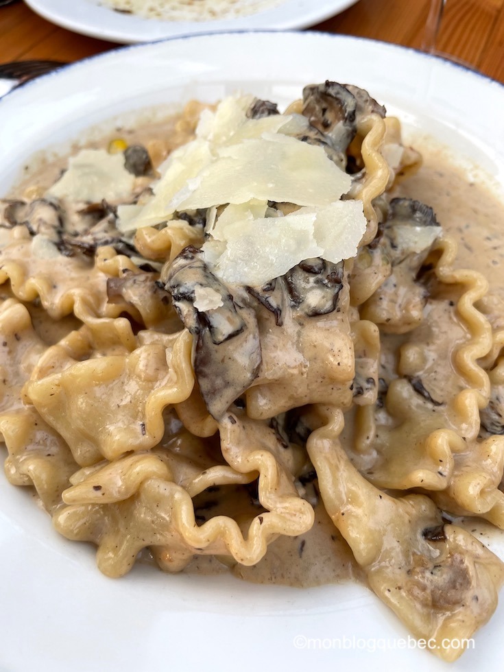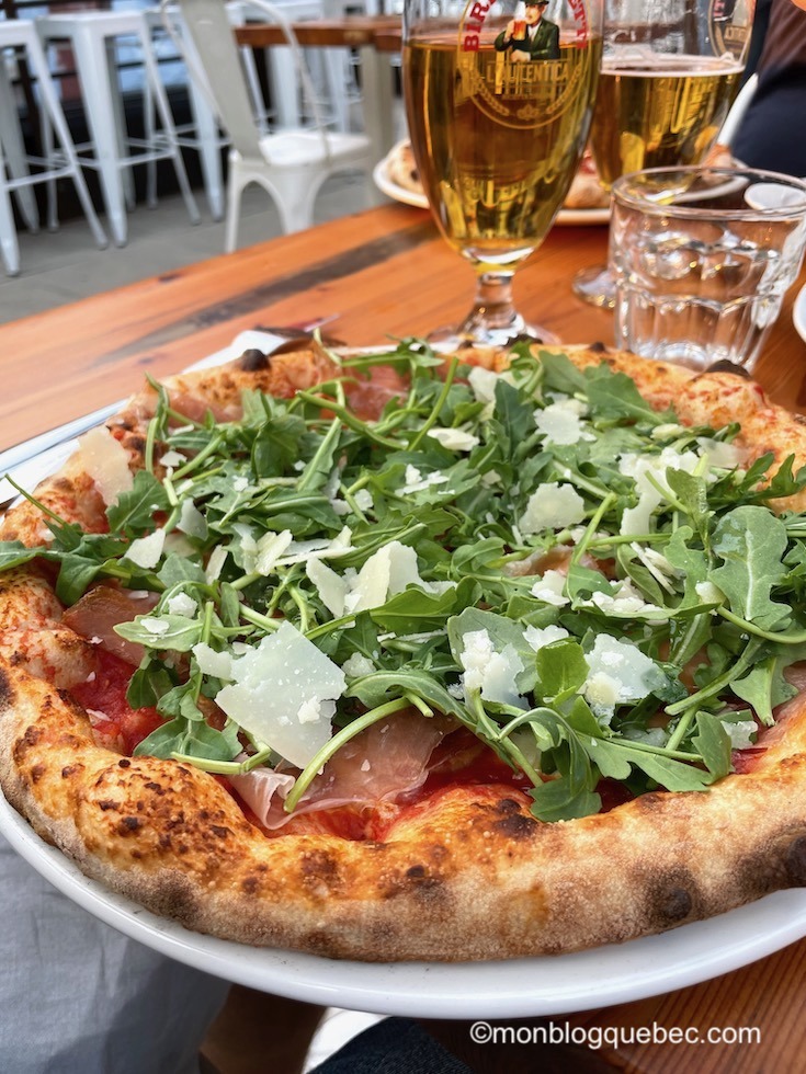 Nos amis nous ont déniché un petit resto italien incroyable : Gusto 101. Le bâtiment, un ancien garage reconverti, propose 2 terrasses, toutes très prisées en cette période estivale. Nous avons la chance d’obtenir une table sur le roof top. La carte est incroyablement fidèle aux restaurants en Italie. Le choix est très difficile. Pour commencer, nous avons partagé la focaccia et les polpettes autour d’un verre. Ensuite, les pâtes aux champignons à la crème et huile de truffes, les pizzas et l’originale salade de kale nous ont conquis.