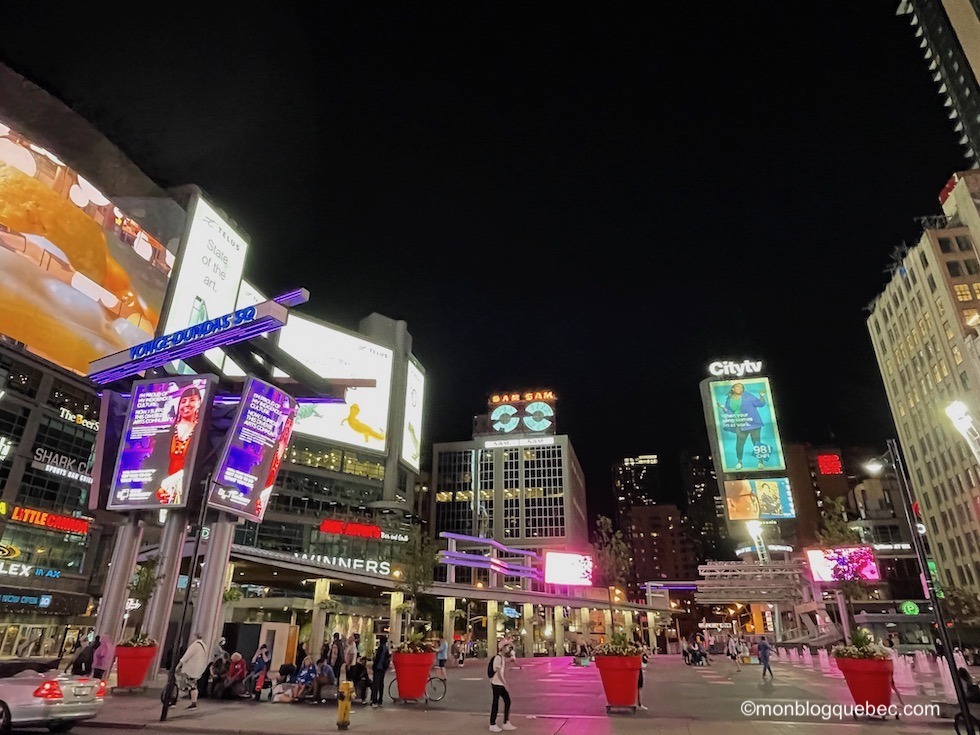 Si tu sors de l’autre côté, tu tomberas sur le Yonge-Dundas Square, le petit Times square de Toronto. La place est très animée et les écrans géants publicitaires sont impressionnants. Savais-tu que Yonge street est la +longue rue du Canada ? En effet, elle ne fait pas moins de 56 km. Elle marque également la séparation entre Toronto du Nord au Sud, les grandes rues qui lui sont perpendiculaires sont nommées «West» et «East». L’équivalent du boulevard Saint-Laurent à Montréal.