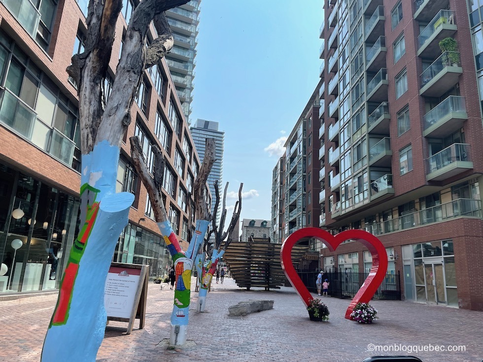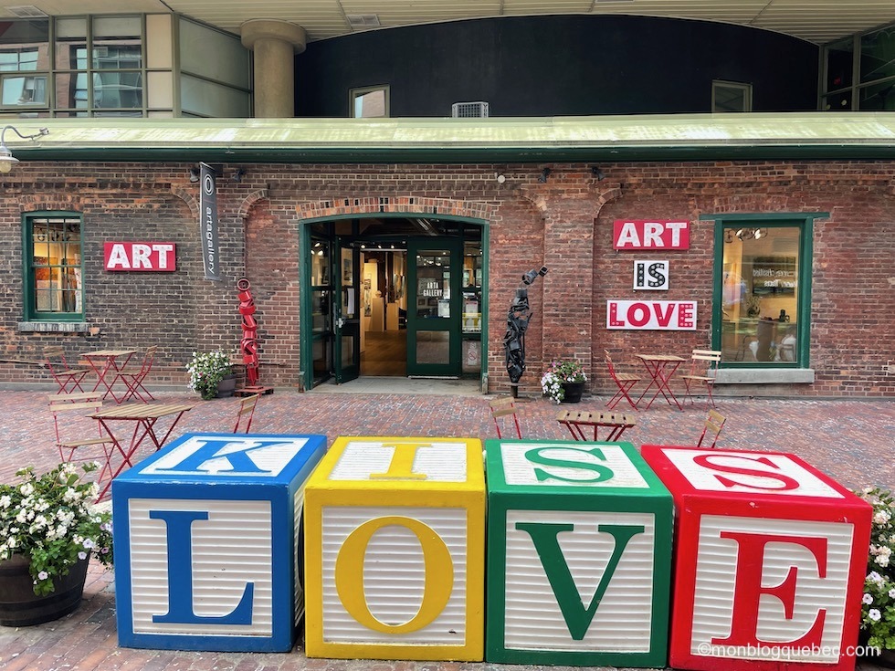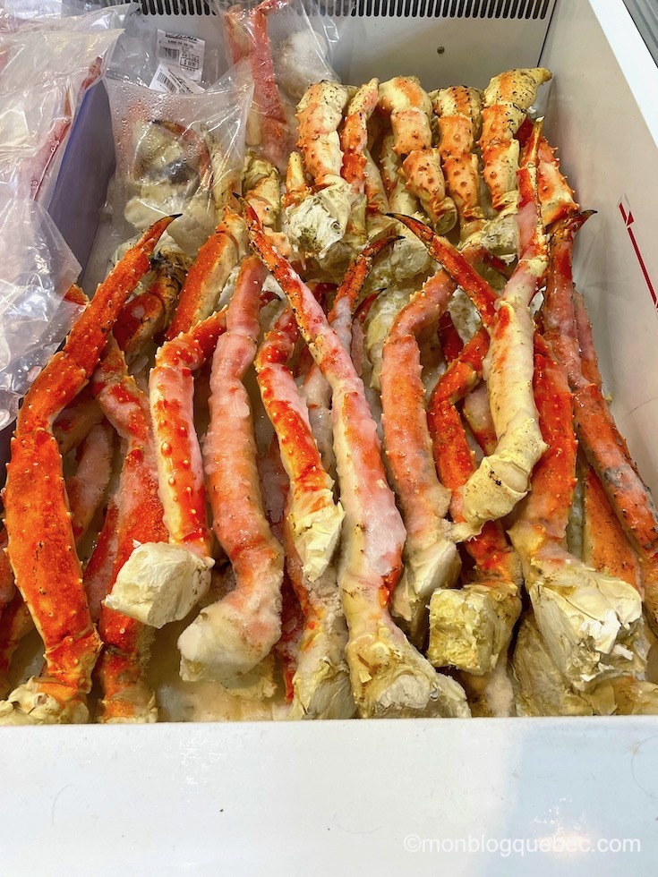Il est plaisant de faire un tour pour regarder la variété des couleurs des poissons et fruits de mer, humer les odeurs des légumes, les effluves des fromages, viandes et poissons, admirer les coloris des fleurs, entendre les sons de l’activité humaine… Et j’ai été impressionnée par la taille des pattes de crabe des neiges : les mâles peuvent atteindre 90 cm d’envergure, soit 40 à 50 cm pour leurs pattes. Tu peux aussi déguster des produits sur place. Ce marché, sur le chemin de Distillery district, te permettra de découvrir et déguster des produits locaux et atypiques. Et les commerçants sont sympatiques et toujours prêt à te renseigner.
