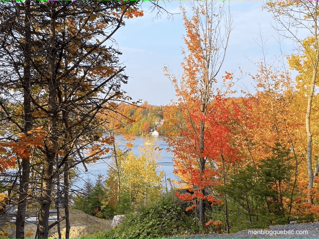 Ce petit village situé à 1h15 de Montréal propose une petite plage publique où nous avons choisi de déjeuner pour profiter dès le matin du spectacle offert par ces couleurs.
