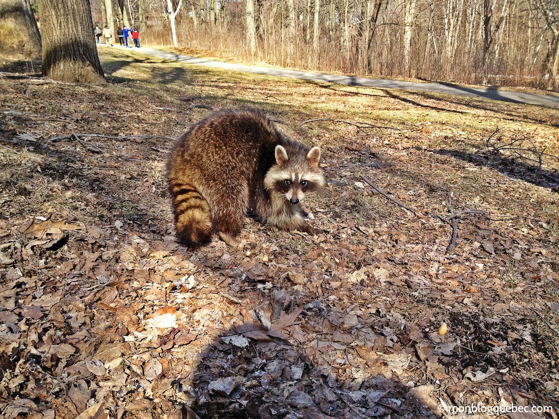 De notre côté, nous n'oublierons jamais cette rencontre inattendue avec un joli raton laveur au détour d'un petit sentier. Il est venu nous rencontrer... et a rapidement attiré tous les regards. RV Rue Laurier Est.