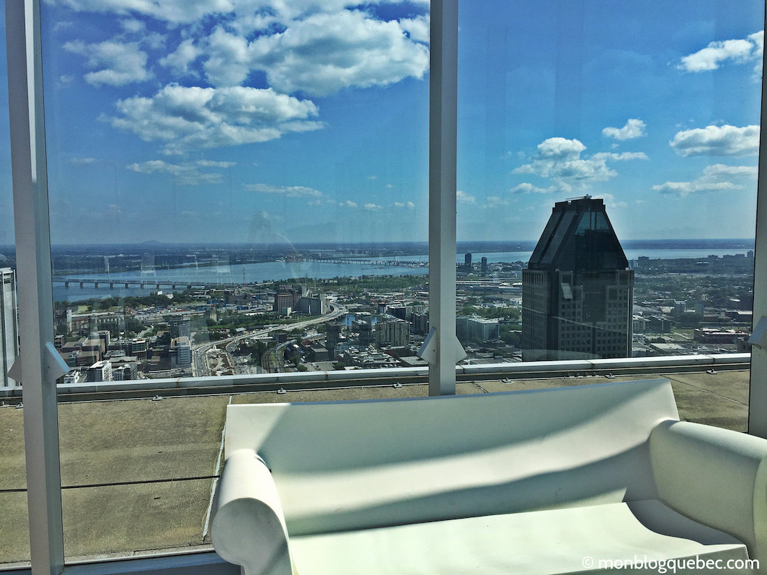 Nous pouvons admirer les beautés de la métropole : du fleuve Saint-Laurent au Mont-Royal en passant par le Quartier des spectacles, le Parc Olympique et le pont Jacques Cartier. Il y a même une terrasse pour boire un verre. Et si pour ceux qui aiment l’insolite, il est possible de réserver une séance de Yoga sur la terrasse, suivie d’un brunch au restaurant Les Enfants Terribles, situé au sommet de la tour. En savoir plus : Observatoire Place Ville Marie, 5 Place Ville Marie, Montreal, site web.