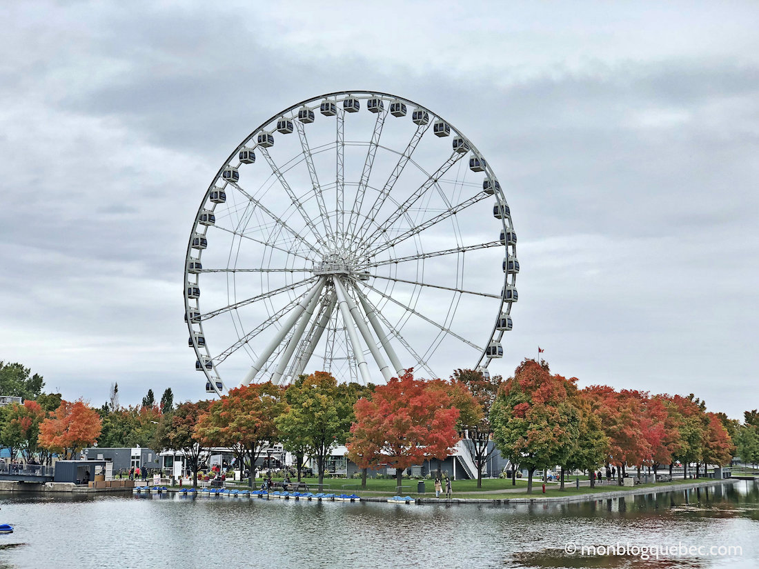 La grande roue de Montréal est la plus haute au Canada, avec 60 m de hauteur. 42 luxueuses cabines, à température contrôlée en toute saison, nous offrent une vue fabuleuse sur la vieille ville et le Saint-Laurent, de jour comme de nuit. En hiver, nous surplombons les patineurs sur la piste animée de la patinoire Natrel. Et en été, nous découvrons une belle vue sur les bateaux de plaisance et de croisière en halte dans le vieux port de Montréal, les pédalos au pied de la grande roue et les touristes en balade sur les quais animés. En savoir plus : La Grande Roue de Montréal, 362 Rue de la Commune Est, Montréal, site web.