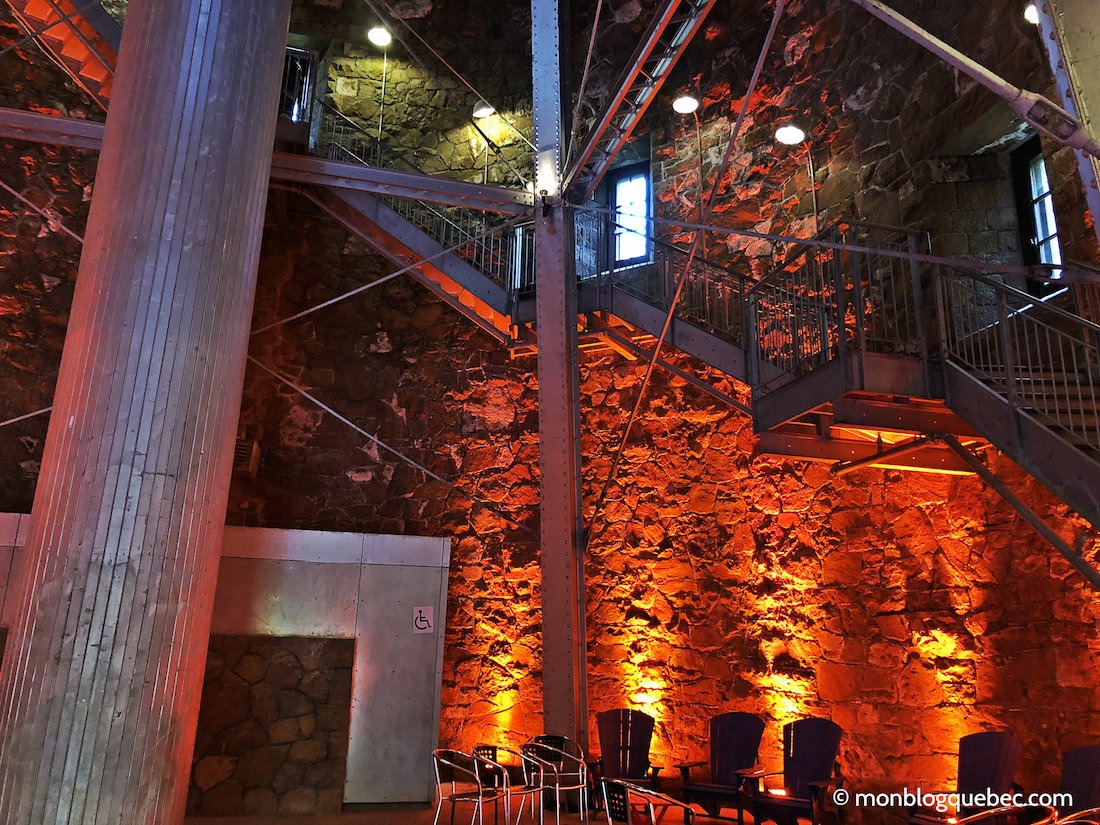 Des lumières rouge flamboyant illuminent le hall. Il faut gravir 157 marches pour atteindre la terrasse d’observation, à 30 m de hauteur. Mais, l’ascension en vaut vraiment la peine. Nous apercevons, une fois encore, une fantastique vue sur les îles, le fleuve et la Ville de Montréal.