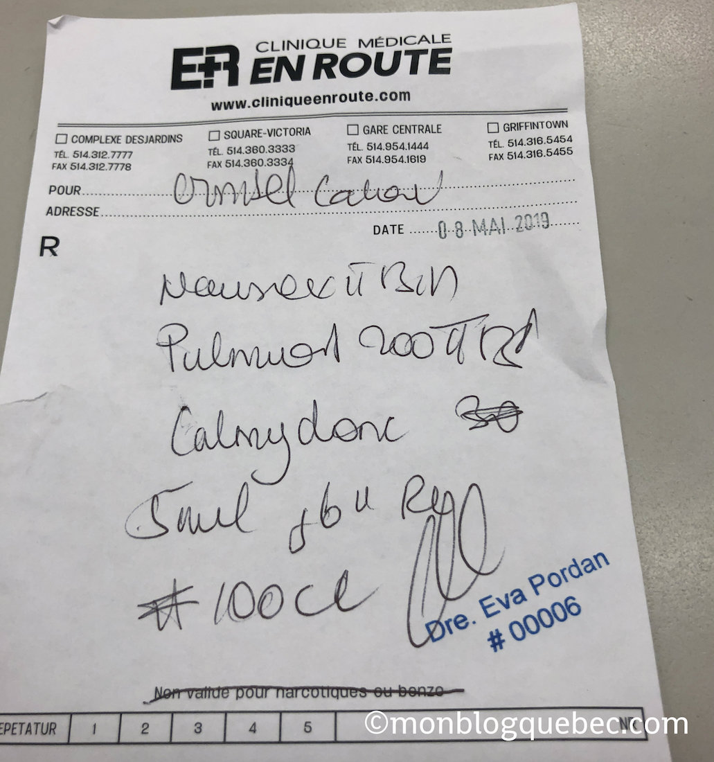 Alors, comment faire lorsque l’on tombe malade sans médecin de famille ? Bien sûr, je ne parle pas de maladies graves. Je parle de rhume, grippe, gastro-entérite… Nous n’avons plus d’enfants en bas-âges. Donc, les choses sont sans doute plus faciles. Mais, le système de santé au Québec est très différent de celui de la France.